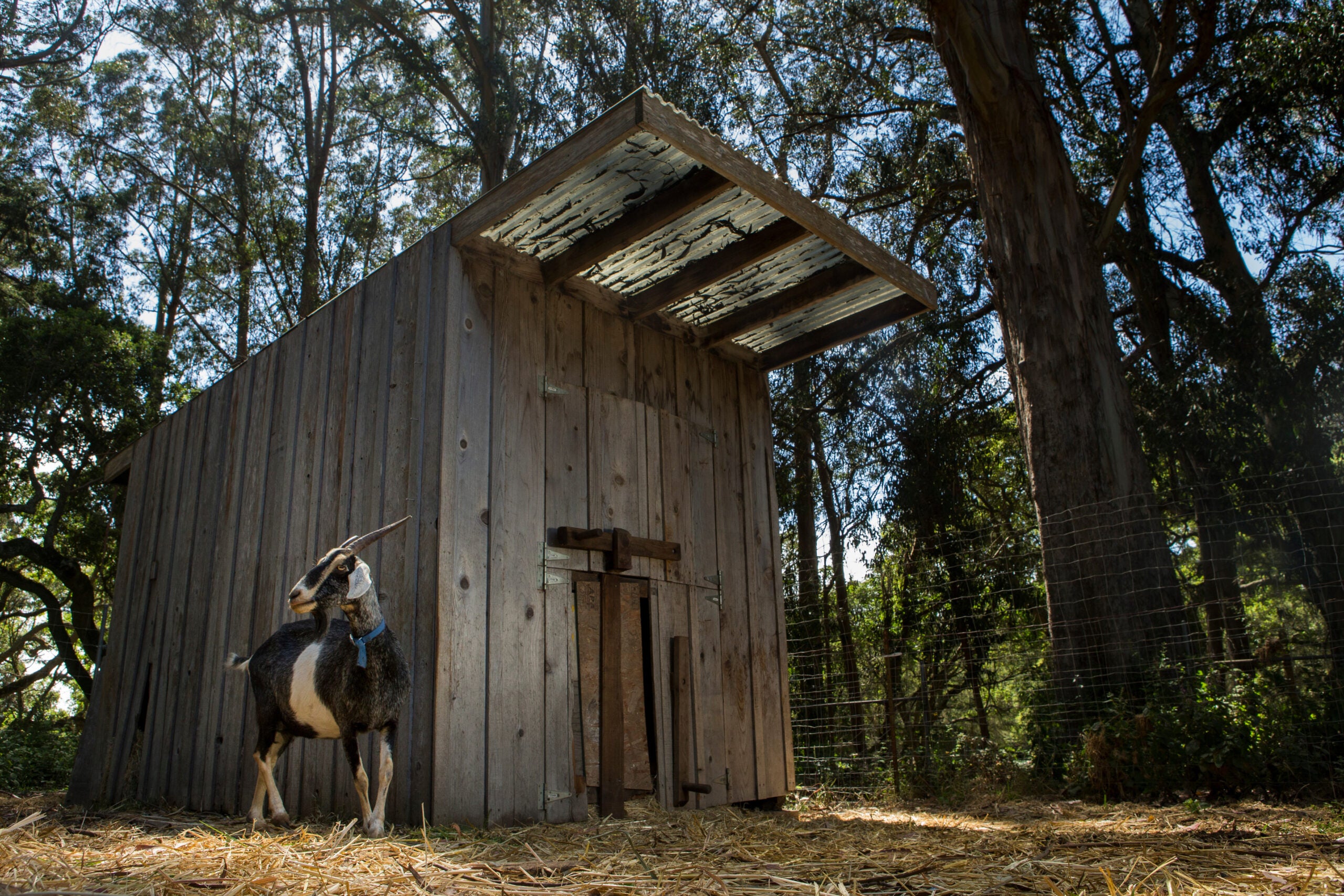 Goat and shed to protect it from pumas at night